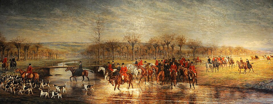 The Pau Hunt was established in 1842 by the Société d’Encouragement as a spectacule authorized by the government of Louis Philippe to hunt predatory animals such as wolves and foxes.[1][2][a] Internationally, the Pau Hunt, dominated by American and British Masters, was one of the most renown hunts until the breakout of World War II. Its country, between Gardères and the hills surrounding Pau was nicknamed “Leicestershire in France”.[3]
