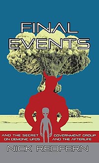 Final Events: Demonic UFOs, Alien Abductions, the Government, and the Afterlife is a 2010 pseudohistory book by Nick Redfern.[1] The book tells a story of the “Collins Elite”, a high-level group of US policymakers who grow to believe UFOs are demonic rather than extraterrestrial. In the text, the author is explicit that the contents are not demonstrably factual.