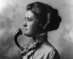 The female voice became the standard in telephony in the 1880s. Telephone operators were initially boys, but only for a short time, as they were perceived as rude, disorderly and disruptive, and prone to playing pranks. They were replaced with young women who were described as obedient and were viewed as a cheap source of labor. The telephone industry preferred white, middle class women as operators for just under a century.[3] At the same time, typewriters began to enter the business world. As with operators before them, the first typists were men, but by the 1890s, women were seen as cheaper labor and took on the gendered female role of secretaries.[4]