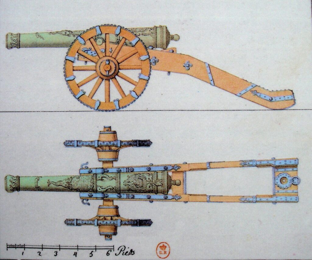 The Artillerie de Nouvelle Invention had been introduced to the French Royal Army by Lieutenant General François de la Frézelière, but never fully adopted. This system had been developed in 1679 by Antonio Gonzales, a Spaniard, and consisted of a range of fairly lightweight cannons. The Artillerie de Nouvelle Invention proved to have recoil problems and was never fully adopted and was discontinued in 1720. Oddly, the system’s 4-pounder, 8-pounder, and 12-pounder cannons turned out to be similar in weight to the Gribeauval system’s guns of the 1760s. The problem with French artillery of the 1720s was that the cannons were manufactured in different nations and were of various calibers. Supplying such a wide assortment of ammunition calibers was a logistical nightmare.[2]
