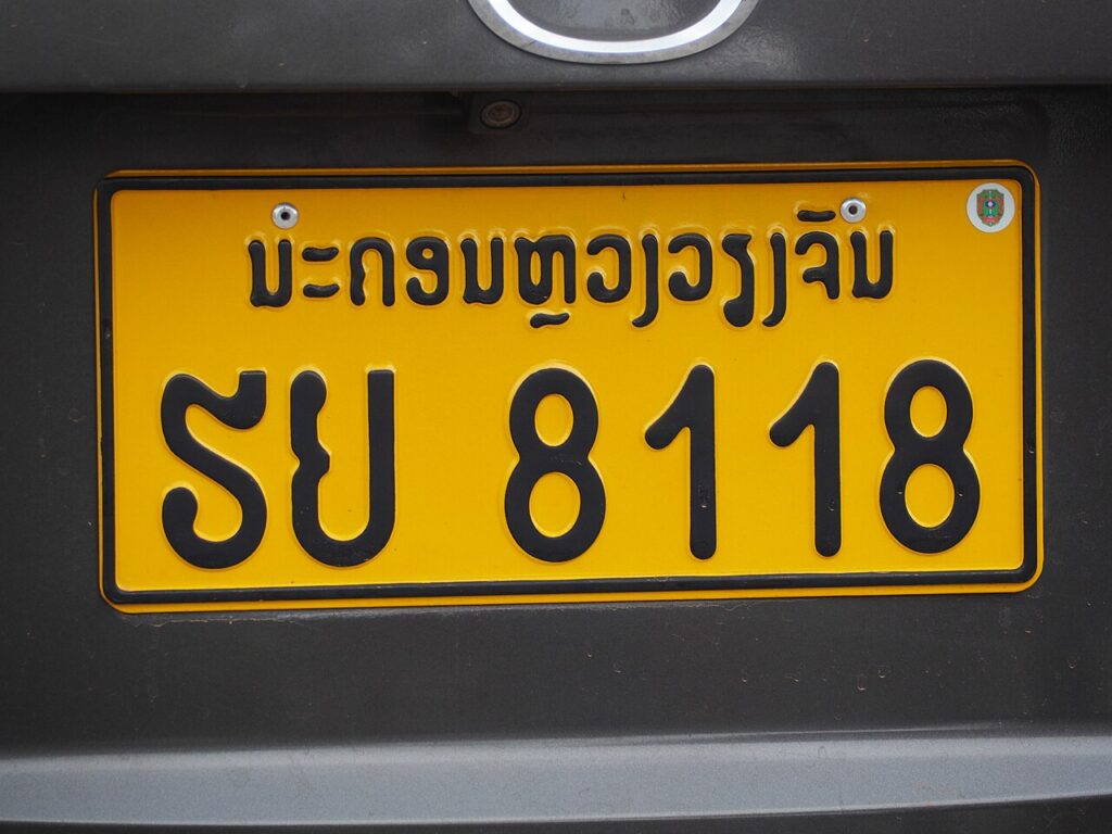 Vehicle registration plates of Laos were first introduced in 1950. The current version started in 2001. The background and text colour vary by type of vehicle. Ordinary plates use black on orange.[1]