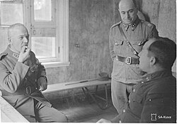 [[File:Karl Lennart Oesch and Vladimir Kirpichnikov with interpreter Georg Baronin.jpg|left|thumb|Kirpichnikov questioned by Finnish General [[Lennart Oesch]].]]
