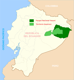 Ecuador was the first country to codify the rights of nature within their constitution.[3] Nonetheless, the Ecuadorian government is currently leasing 70 percent of the Ecuadorian Amazon for oil drilling.[4] 16 Waorani communities fall primarily in a stretch of land labeled Block 22, which is rich in cultural history, flora, and fauna but was planned as a lease for further oil drilling.[4][5]