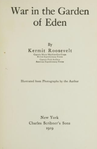War in the Garden of Eden is a book written by Kermit Roosevelt in 1919 which recounts his experiences during World War I in Mesopotamia (Modern-day Iraq).