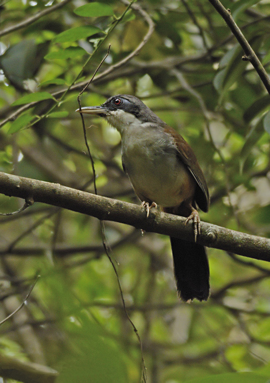 The Wayanad laughingthrush (Pterorhinus delesserti) is a species of laughingthrush in the family Leiothrichidae. It is endemic to the Western Ghats south of Goa in India. These laughingthrushes move in groups in dense forests, producing loud calls but tend to be hard to spot in the undergrowth. They have brown upperparts, a white throat, a broad black mask through the eye and a heavy bill with pale yellow on the lower mandible. Despite the name, derived from the Wayanad region, this species has a wider range than the four other south Indian species of laughingthrush that are restricted to the higher elevation hills.
