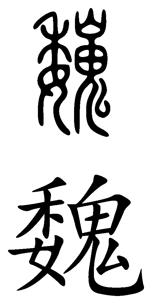 Wei character in ancient script on top, standard script at bottom