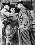 The coal companies moved aggressively to exploit the law in other ways as well. The Coal and Iron Police patrolled company property and denied admittance to union members and supporters. Union members were often arrested for using public roads which traversed company property.[17] Small towns and villages, often encircled by coal company land, became isolated and embattled. In Herminie, all citizens were required to obtain a pass from the local mine manager before leaving the village. Union members were denied the use of post offices or the ability to enter local courthouses, because these facilities were often on coal company property. Nearly 1,000 miners were ultimately arrested for trespass or disorderly conduct.[2][10] Simply walking home in a group from a union meeting on a public highway could earn a contempt citation and a $50 fine.[10][17]