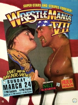 The main event saw Hulk Hogan defeat Sgt. Slaughter for the WWF Championship as part of a storyline in which Sgt. Slaughter portrayed an Iraqi sympathizer during the United States’ involvement in the Gulf War. Significant events on the undercard included The Undertaker‘s WrestleMania debut and the beginning of his renowned winning streak, a retirement match between Randy Savage and The Ultimate Warrior leading to the former’s reunion with estranged love Miss Elizabeth, as well as the final televised match of the original Hart Foundation, after which Bret Hart became primarily a singles wrestler.