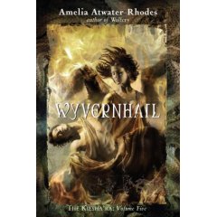 Wyvernhail is the fifth book in the Kiesha’ra Series by Amelia Atwater-Rhodes. The preceding four books in order are: Hawksong, Snakecharm, Falcondance, and Wolfcry. It is told from the point of view of Hai the gyrfalcon, cobra mix, who is struggling to find a way out of Ecl, or the darkness.