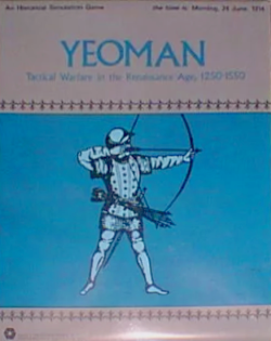 Yeoman, subtitled “Tactical Warfare in the Renaissance Age, 1250-1550”, is a board wargame published by Simulations Publications, Inc. (SPI) in 1975 that simulates battles during the Late Medieval period and Renaissance. Originally published by SPI as Renaissance of Infantry, the game was revised and republished with the title Yeoman as part of a collection of games called PRESTAGS (“Pre-Seventeenth Century Tactical Game System”).